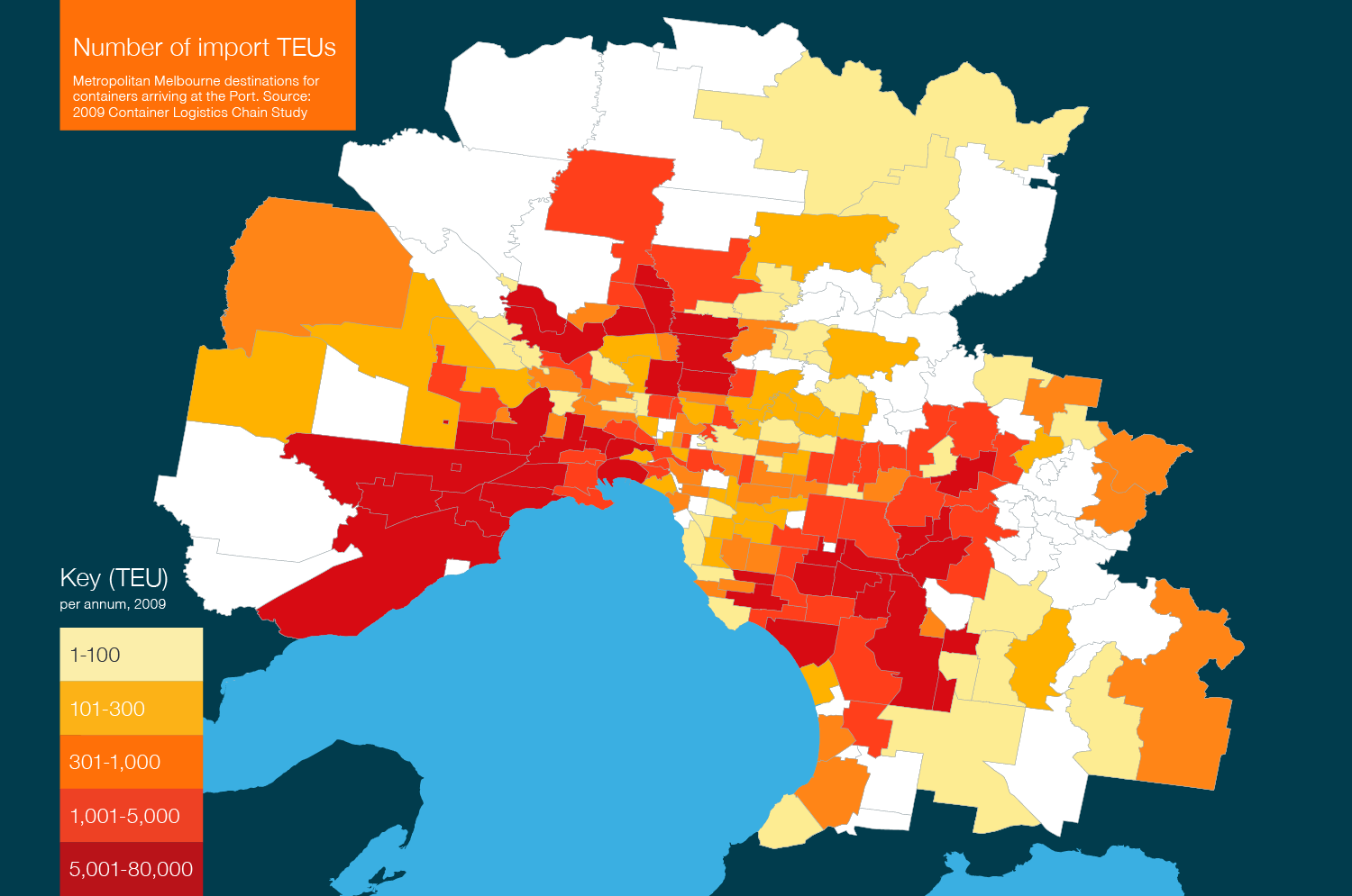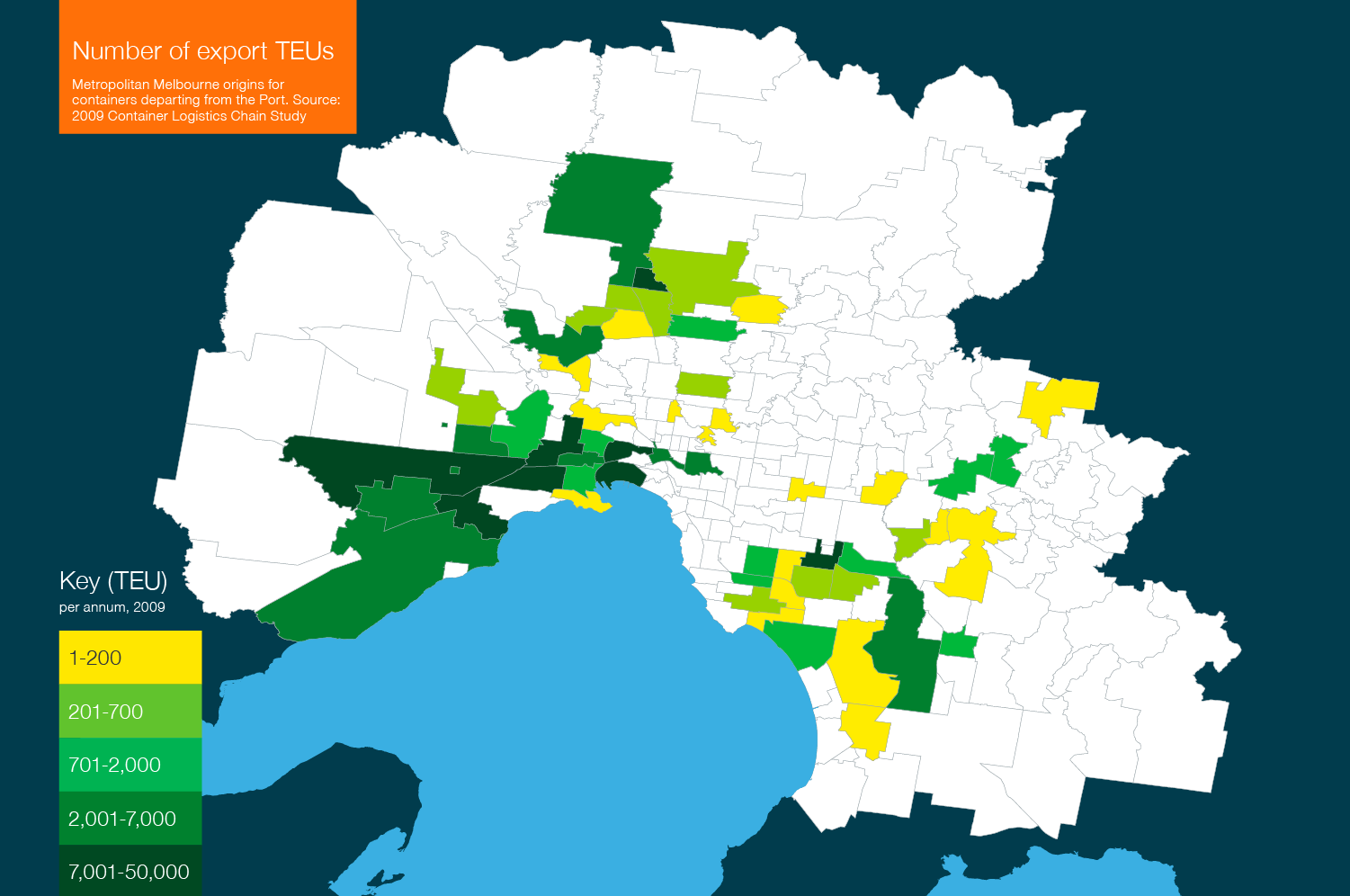 Figure 2: Metropolitan Melbourne origins for 20-foot containers departing from the Port of Melbourne 2009.